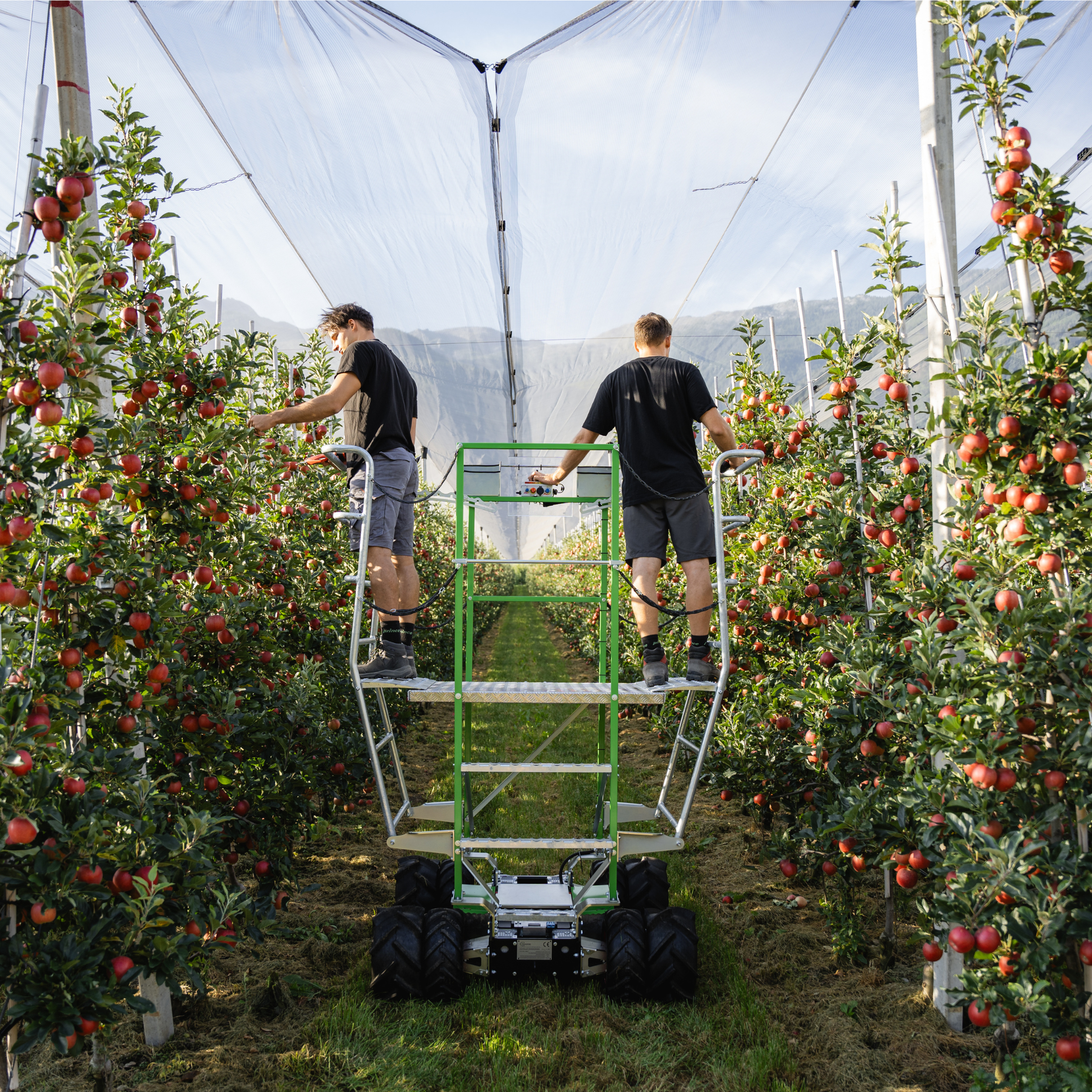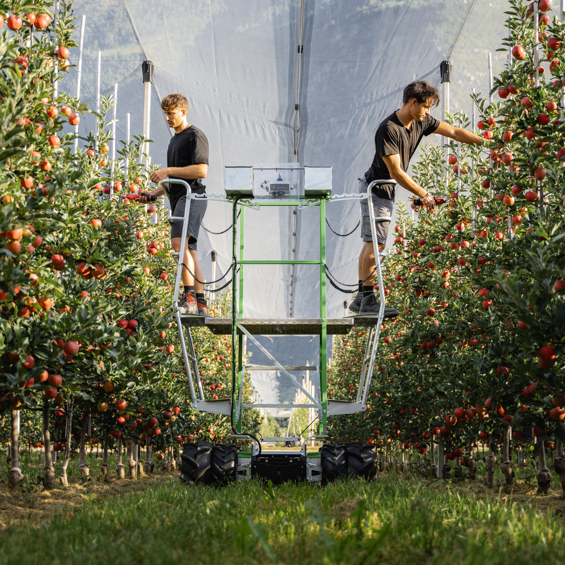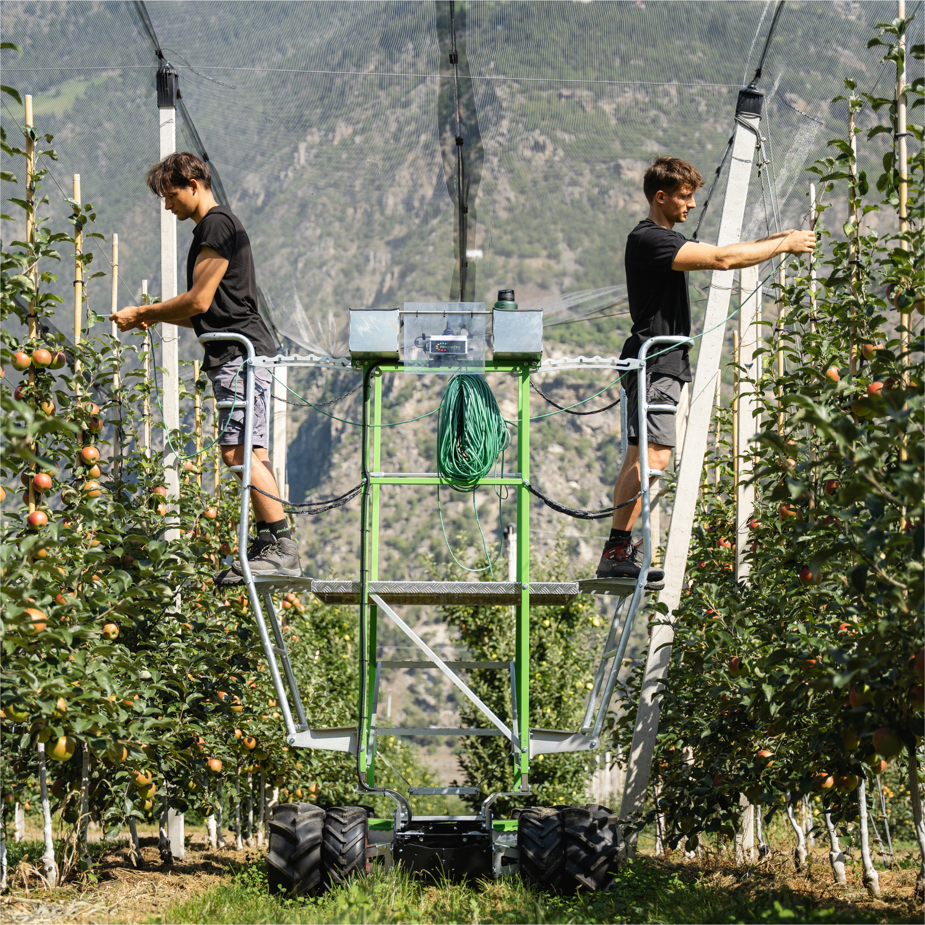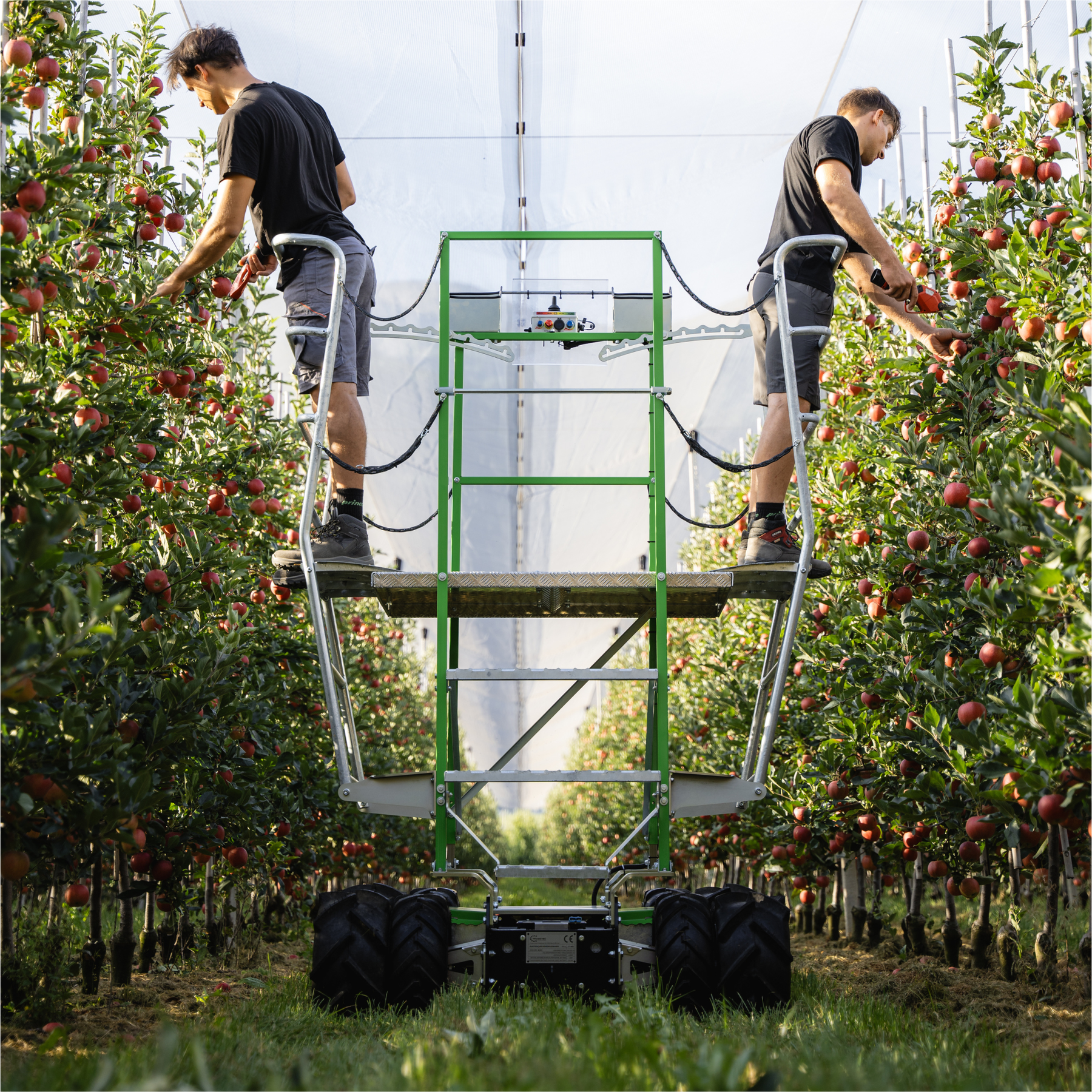 Alors que la Lady est une machine conçue pour être utilisée comme transporteur de caisses, la Berglady peut être considérée comme une machine polyvalente offrant de nombreuses possibilités d'utilisation, en particulier en combinaison avec la plate-forme ou les échelles de récolte. La Landlady, quant à elle, est une plate-forme de travail solide et simple, utilisable toute l'année, mais qui ne convient pas pour la récolte.