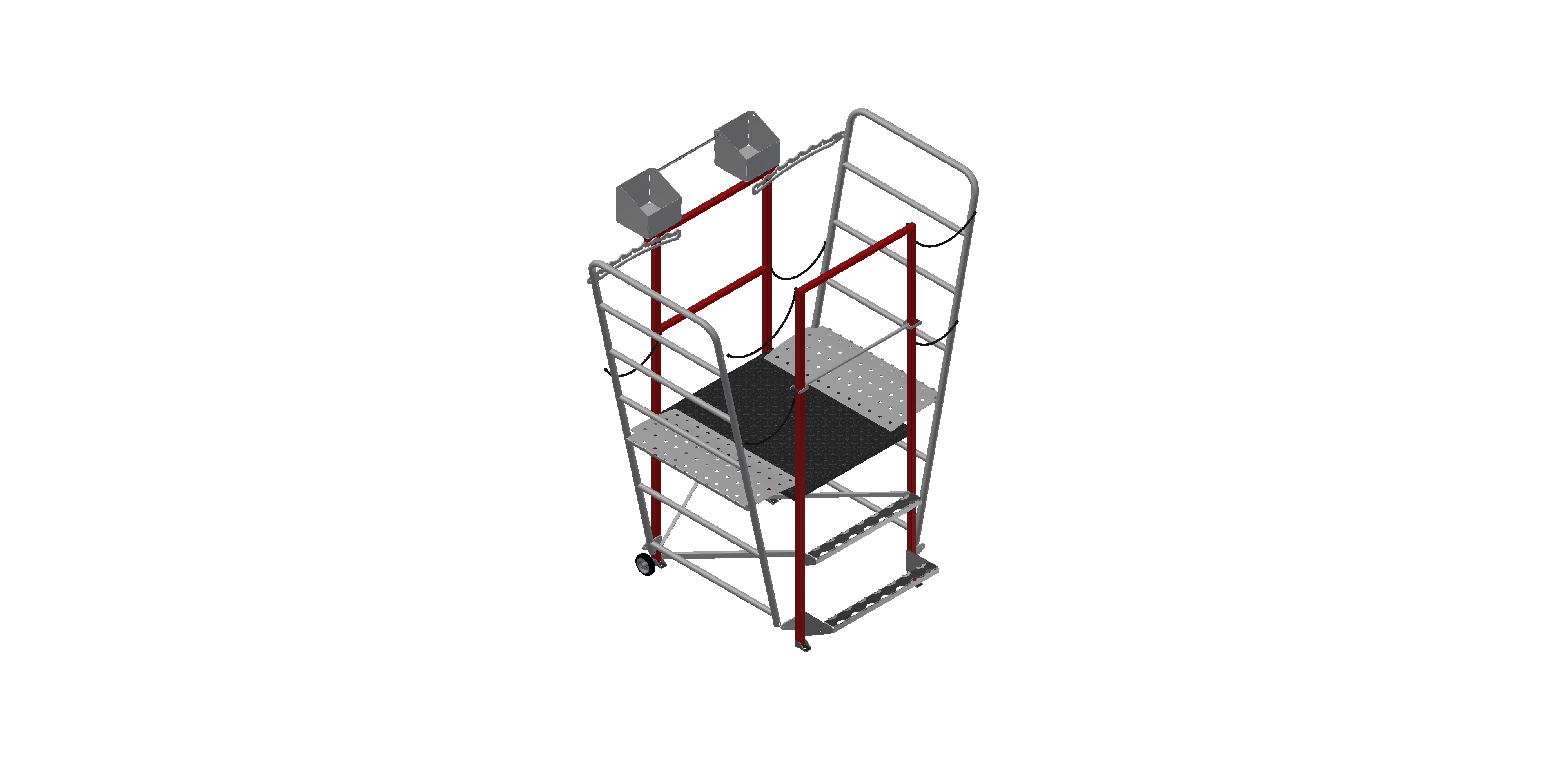 The Lady can carry two empty bins at the front, while one bin is positioned for filling and active use.