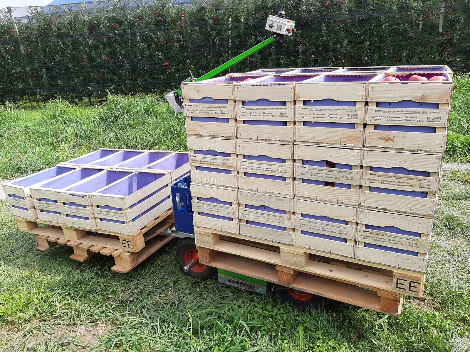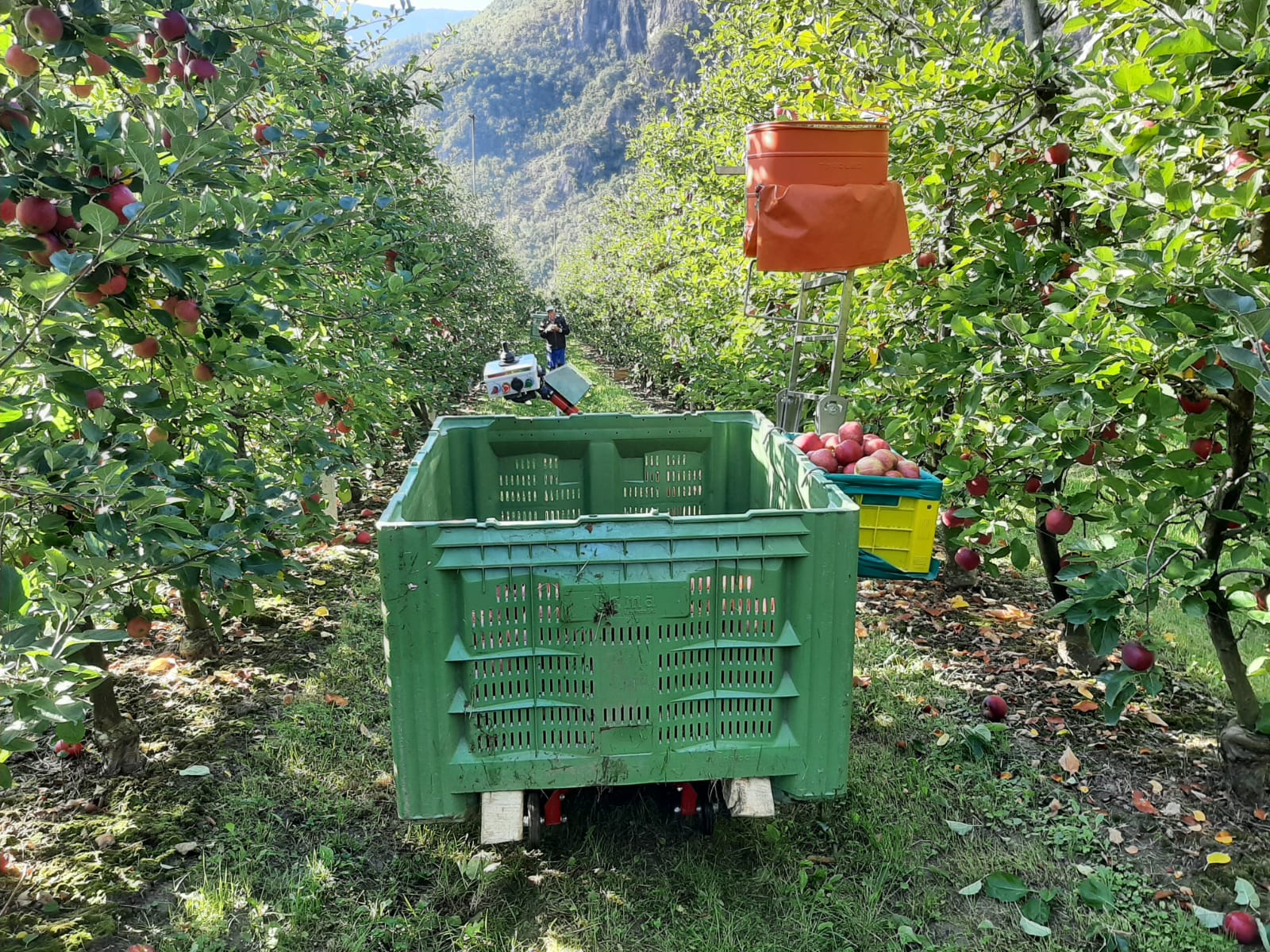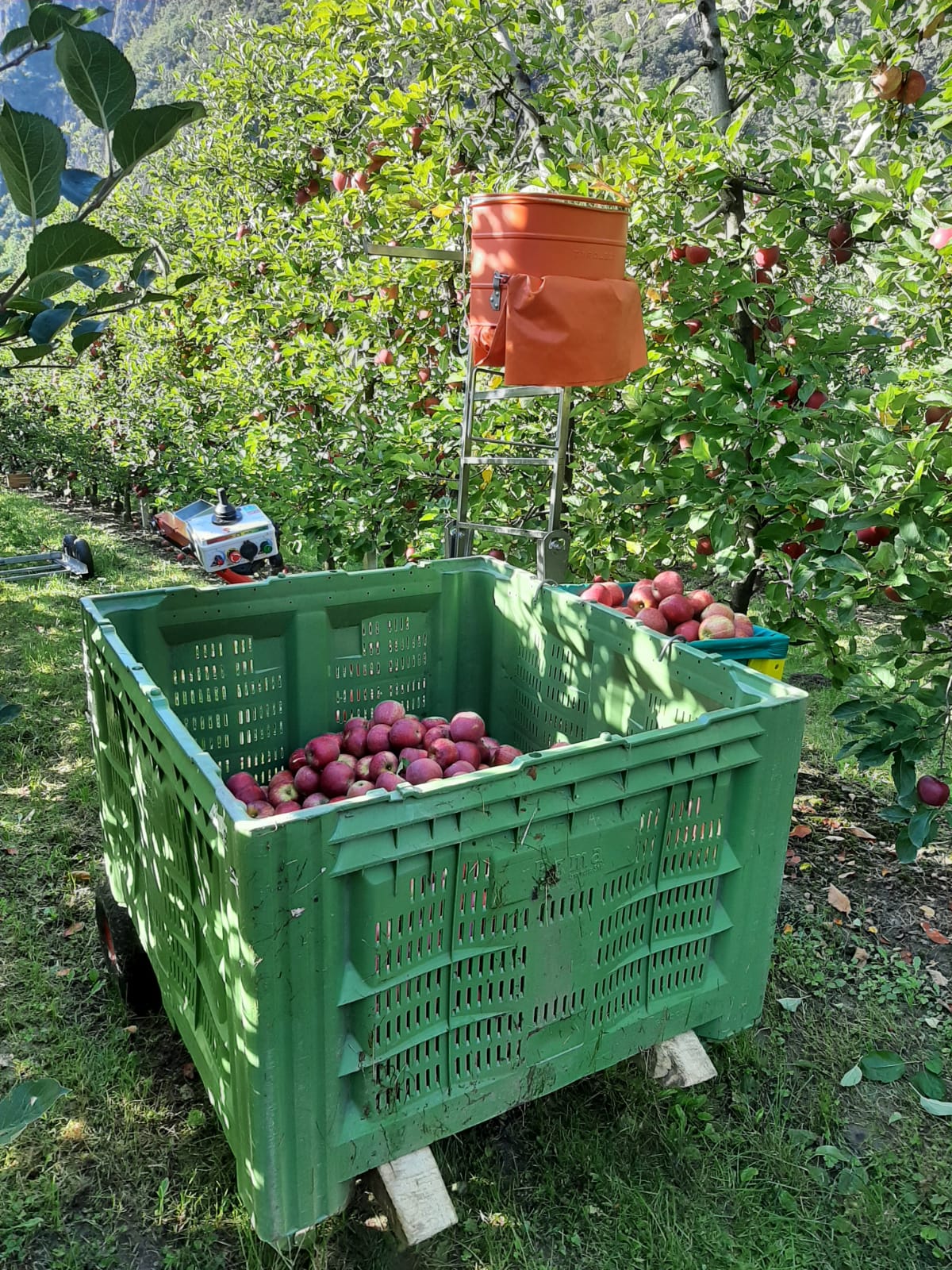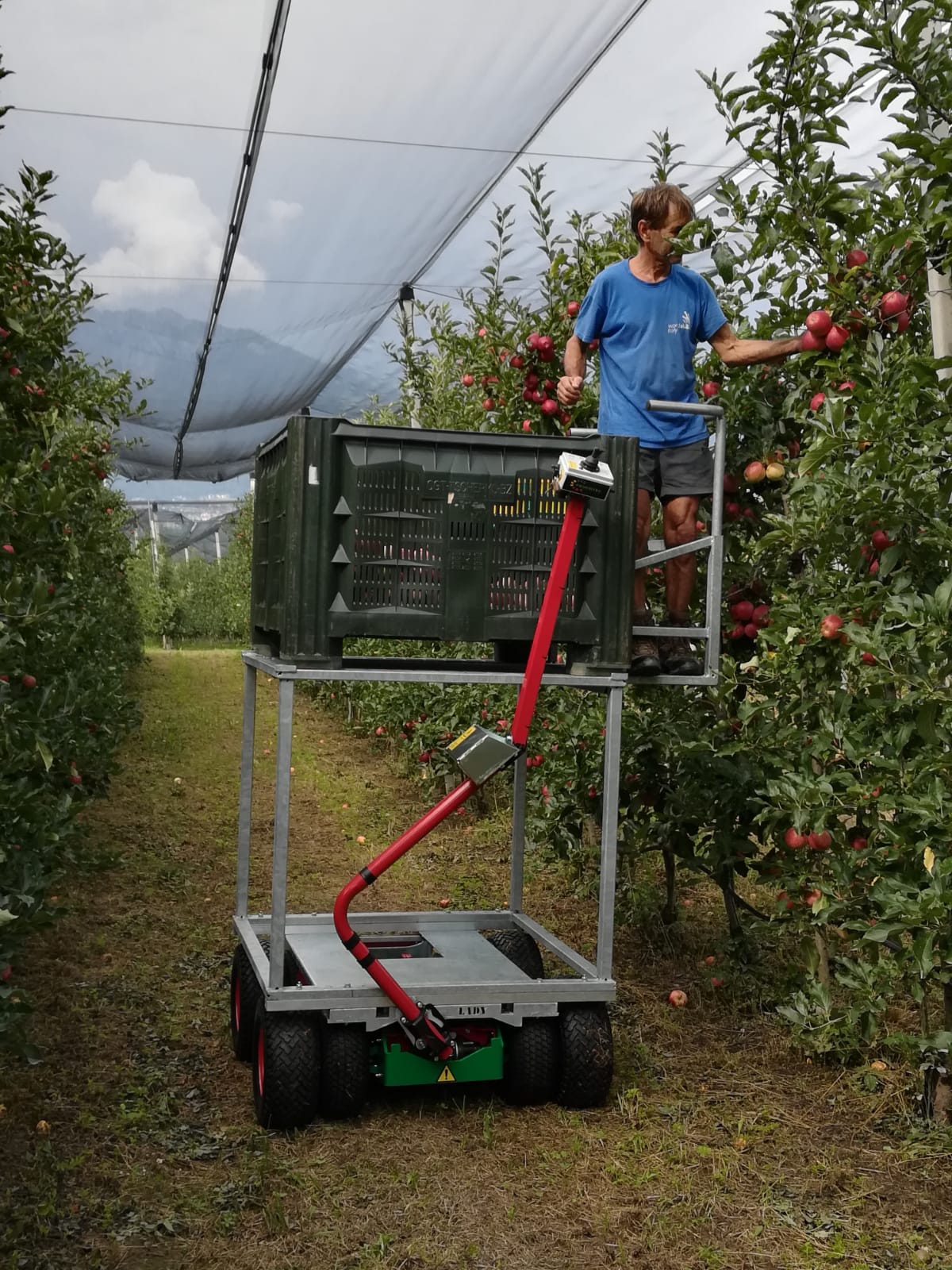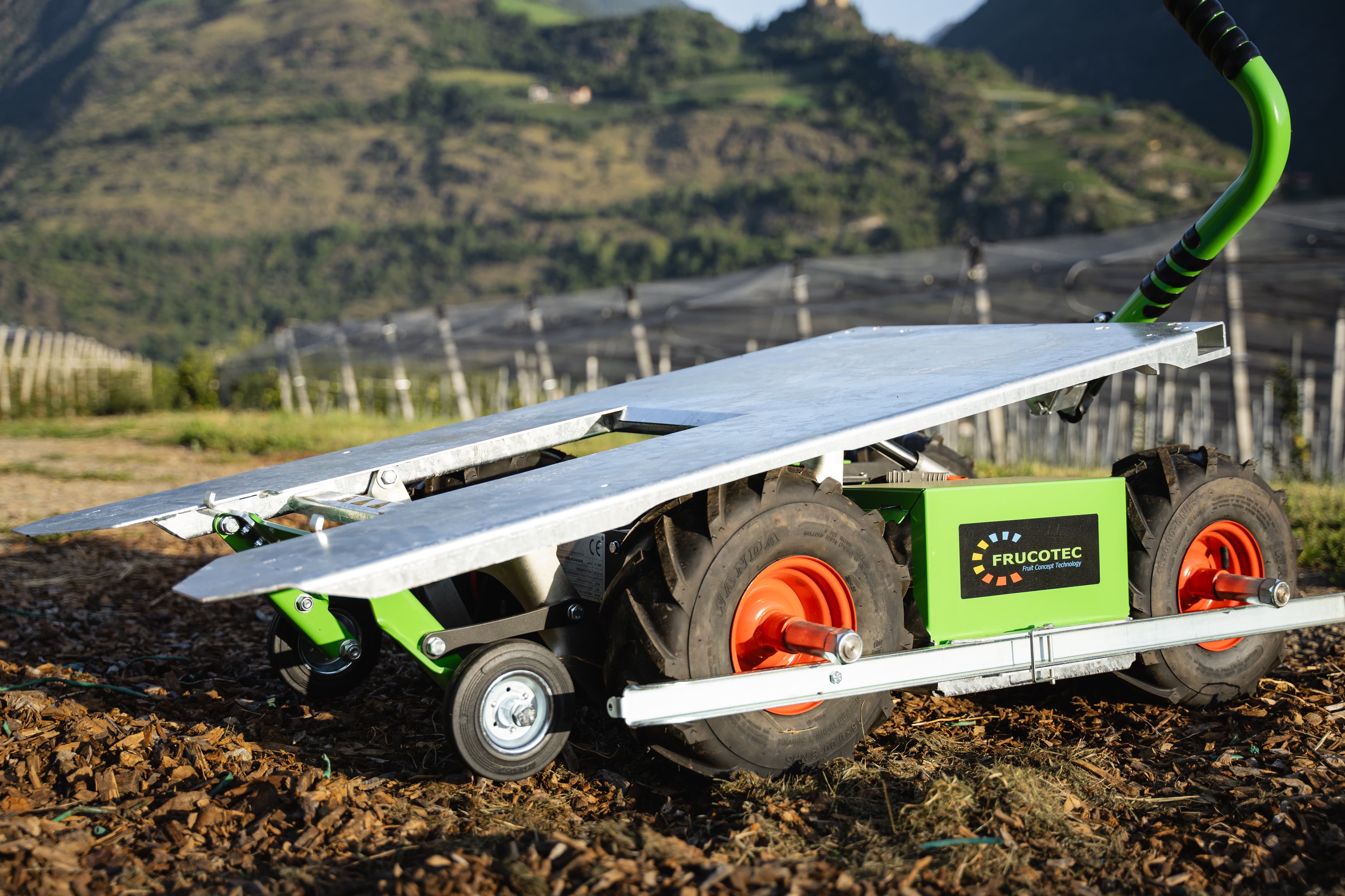 Ideal for anyone looking for a purely electric bin transporter to support the harvest in the lower area of the trees. For a gentler, more efficient, and more comfortable harvest.