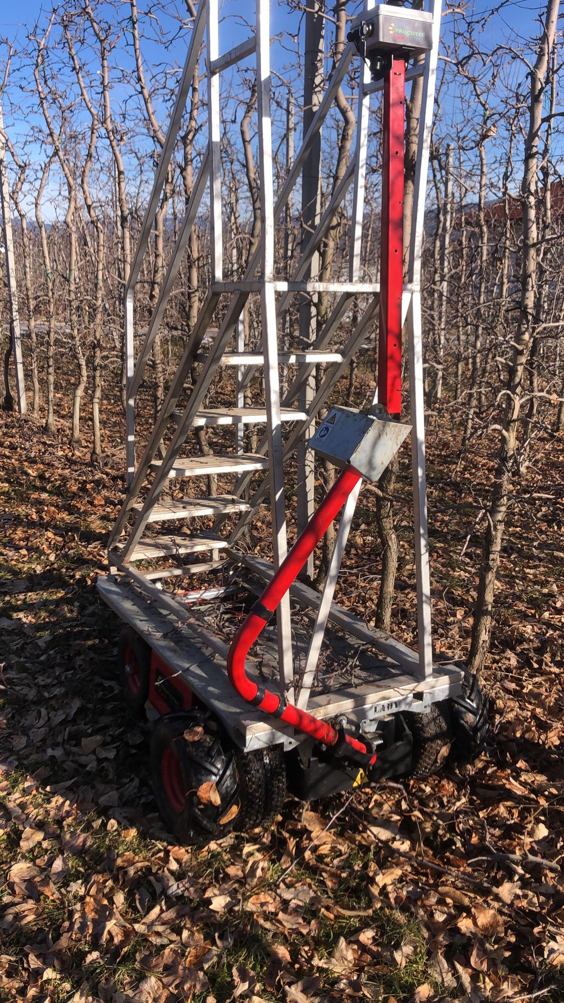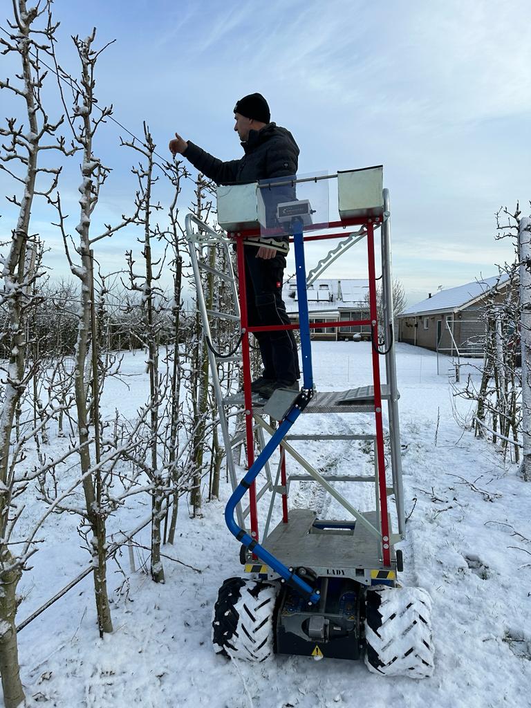 While the Lady is a machine designed to be used as a box transporter, the Berglady can be seen more as an all-rounder with many more possible uses - especially in combination with the platform or the harvesting ladders. The Landlady, on the other hand, is a strong and simple, pure work platform for year-round use, but not suitable for harvesting.