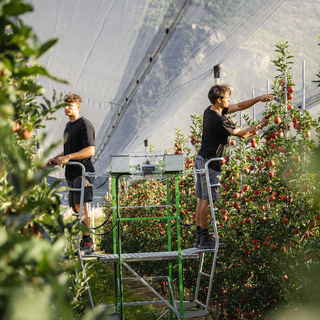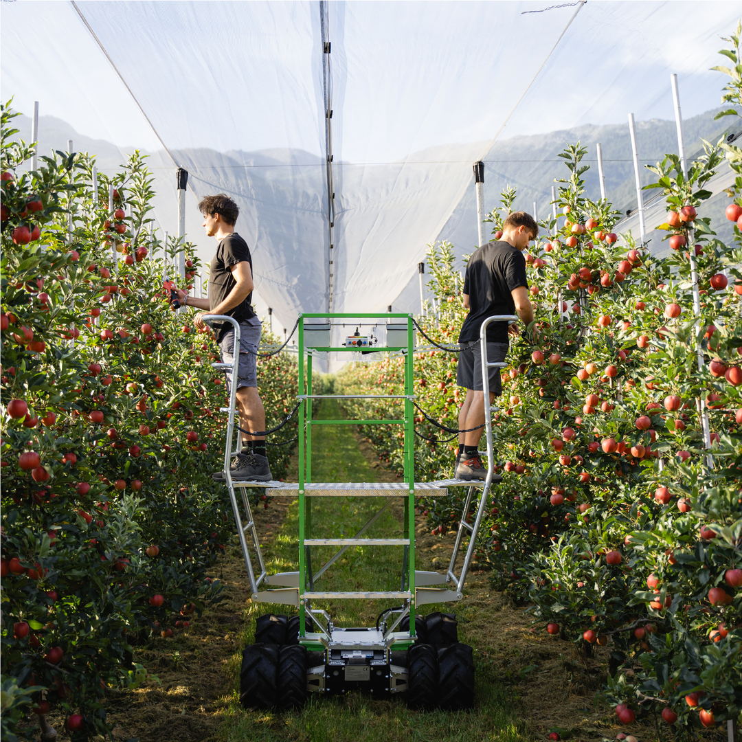 If someone drives a lot of inclines in their orchards and also uses the platform or the harvesting ladders a lot and therefore 2 people work with them, it can make sense to increase the battery capacity. We have various options for this. In this case, please contact us.